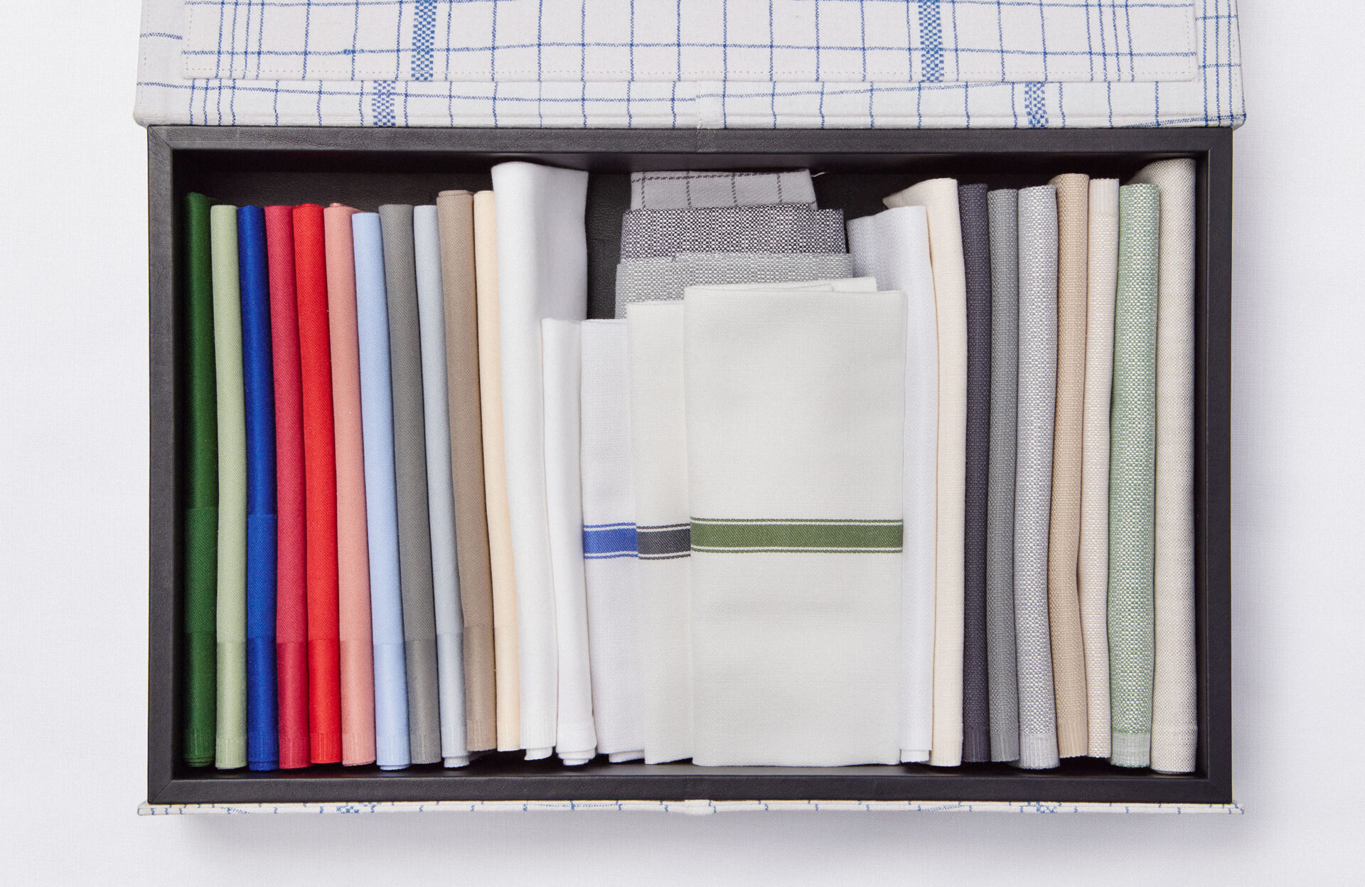 Sikre at dine spisende gæster får en sammenhængende helhedsoplevelse. Vi har et bredt sortiment af duge og servietter, der spænder fra det elegante og klassiske, til det rå og moderne. Lad os i samarbejde finde den løsning, der understøtter netop jeres udtryk og koncept – hvad enten dækketøjet skal matche et nuværende look eller bidrage til et helt nyt.