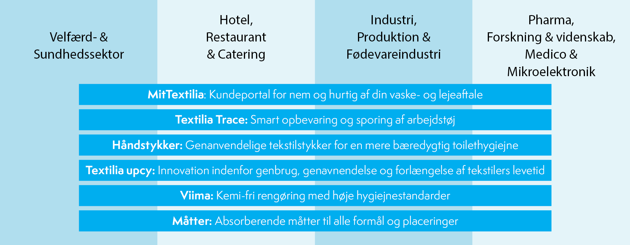 Textilia opererer gennem fire nøglesektorer, der hver især er specialiseret i en specifik industrisektor. Hver sektor udvikler omfattende og konkurrencedygtige løsninger, samtidig med at de yder ekspertvejledning for at hjælpe vores kunder med at skabe mest mulig værdi for deres forretning.